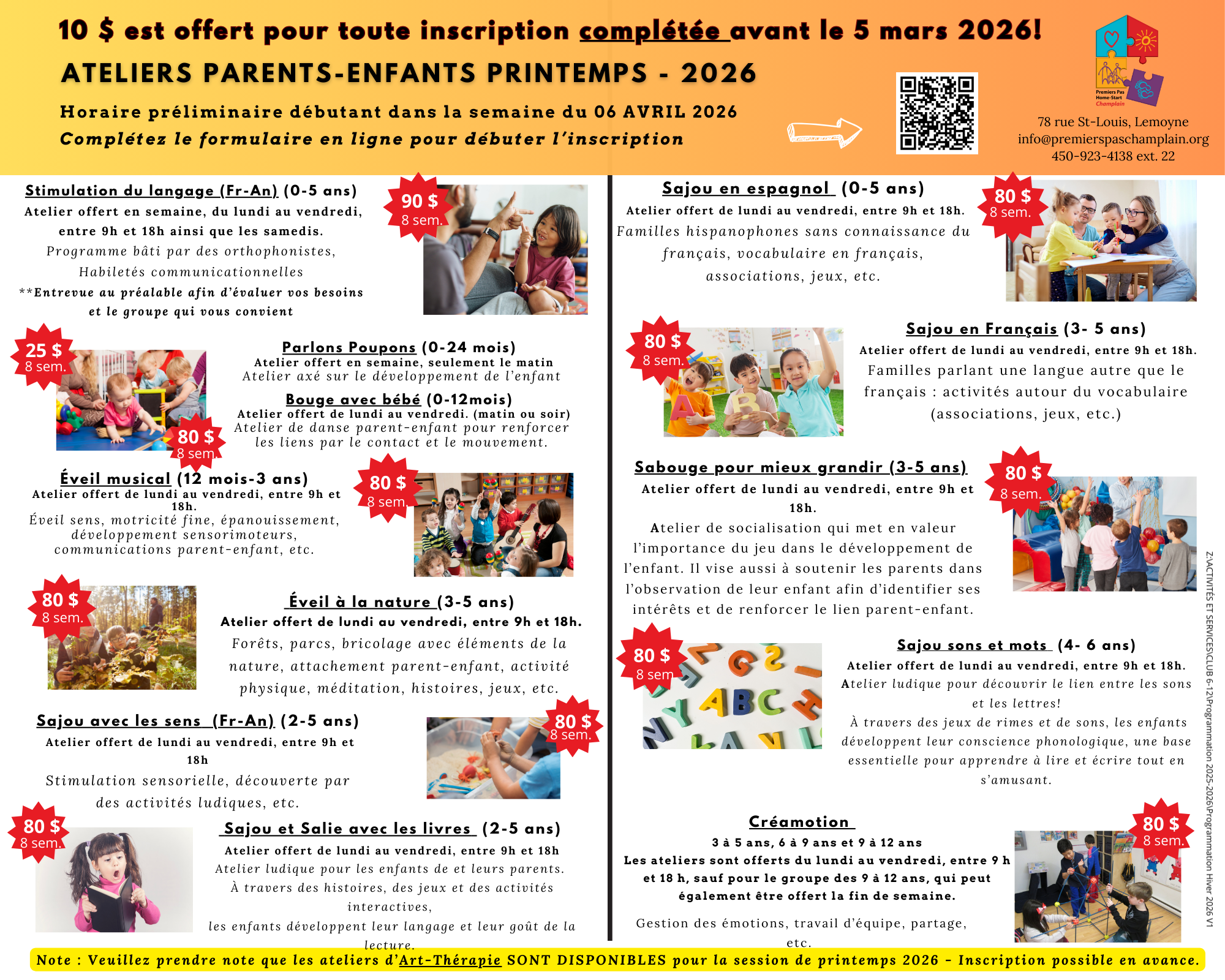 Les inscriptions pour les ateliers de printemps 2026 sont maintenant disponibles!